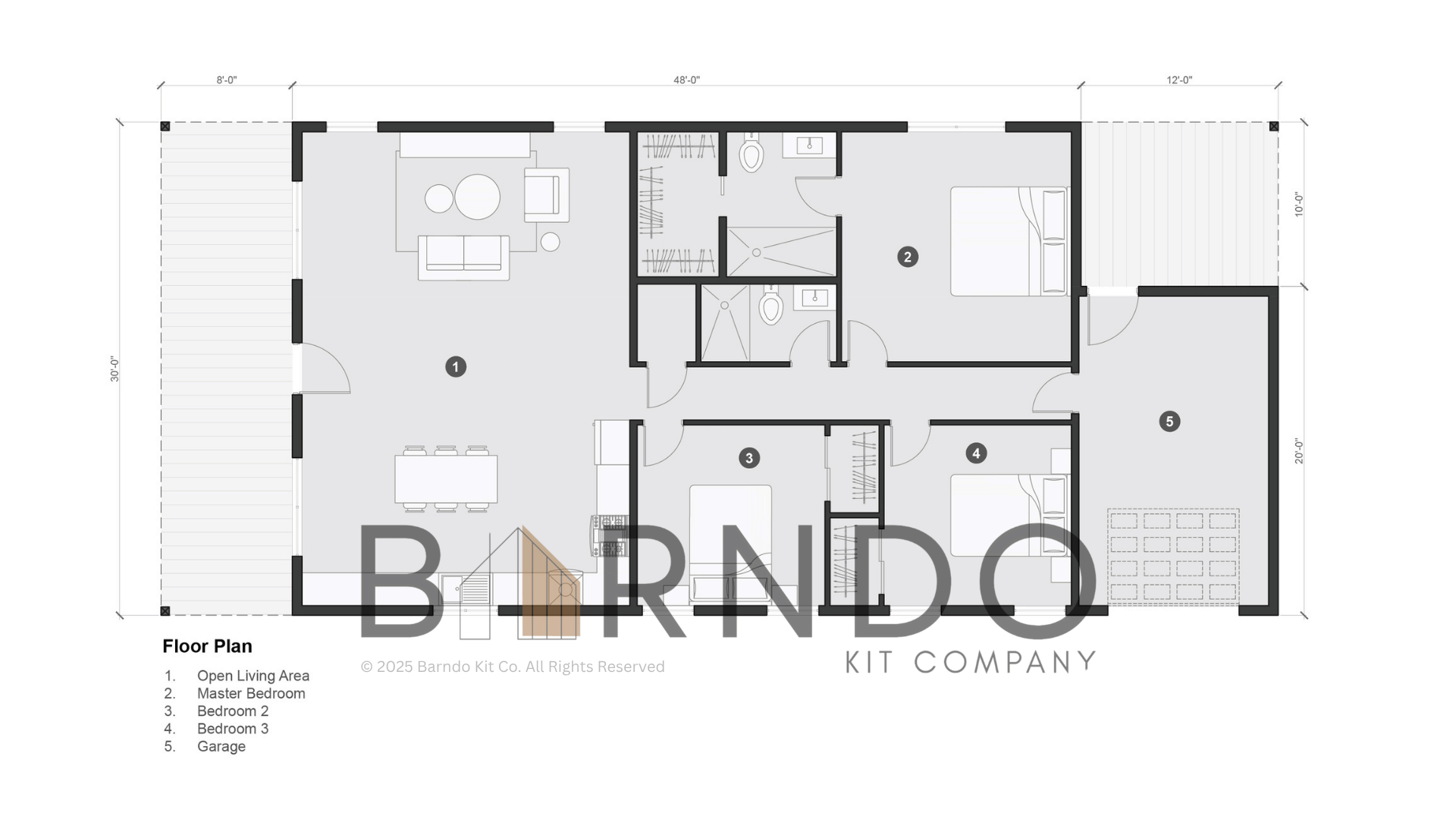 Purchase of a Barndo Kit Co. barndominium kit includes a single-use license for the accompanying construction plans: