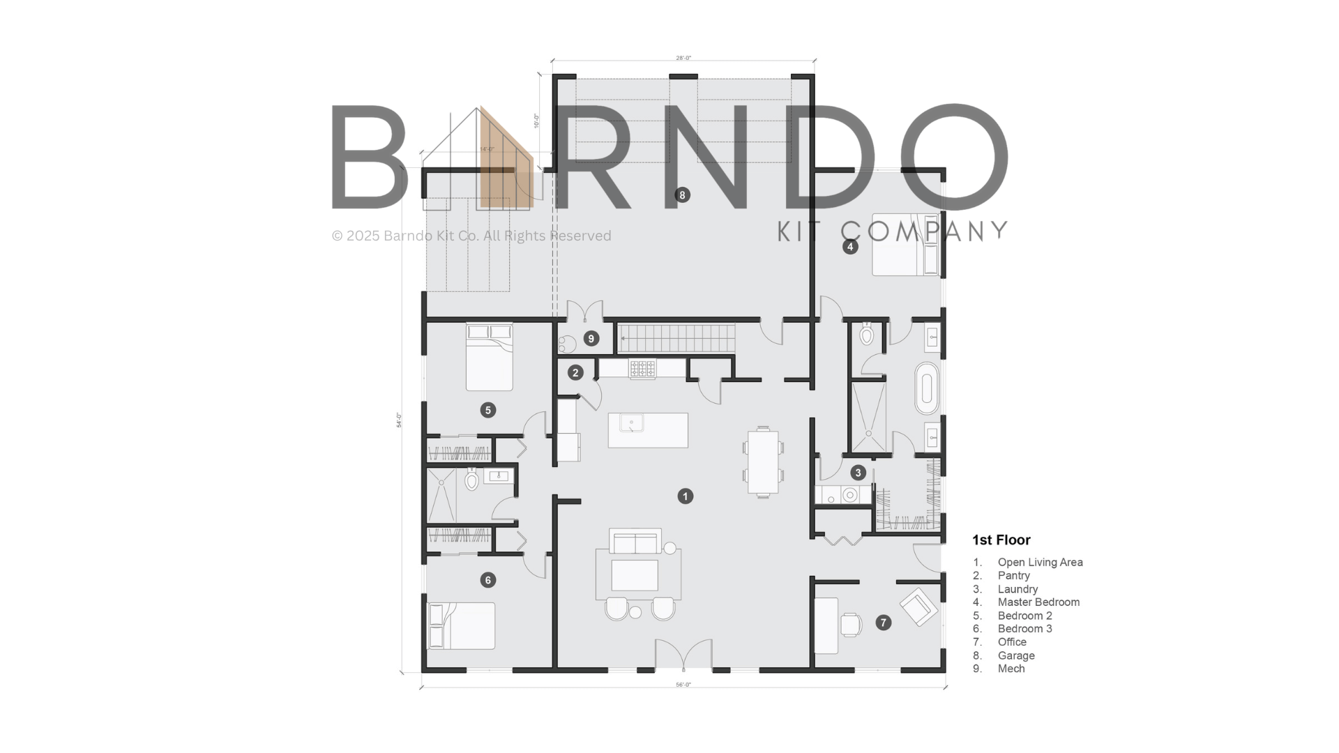 Purchase of a Barndo Kit Co. barndominium kit includes a single-use license for the accompanying construction plans: