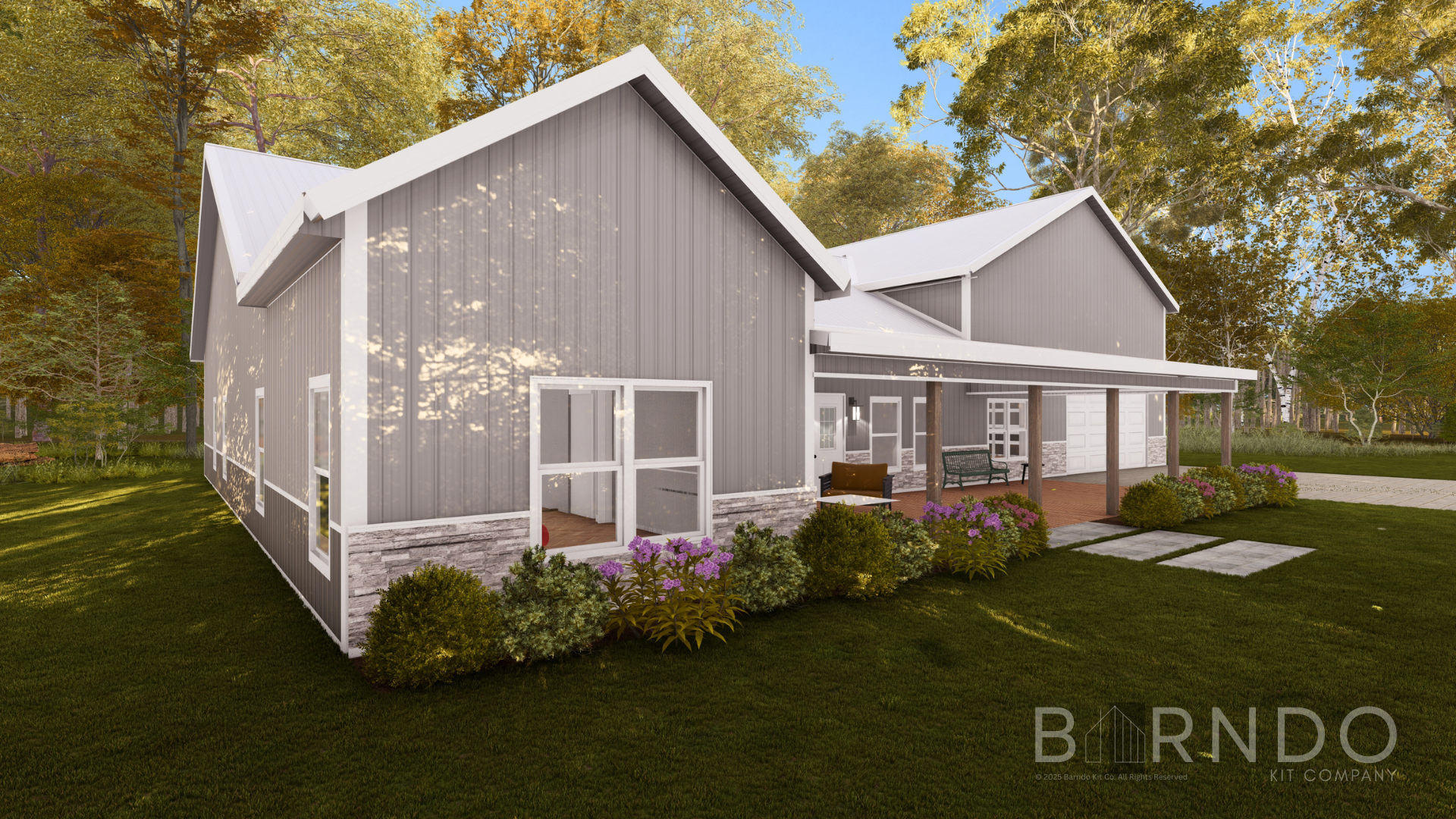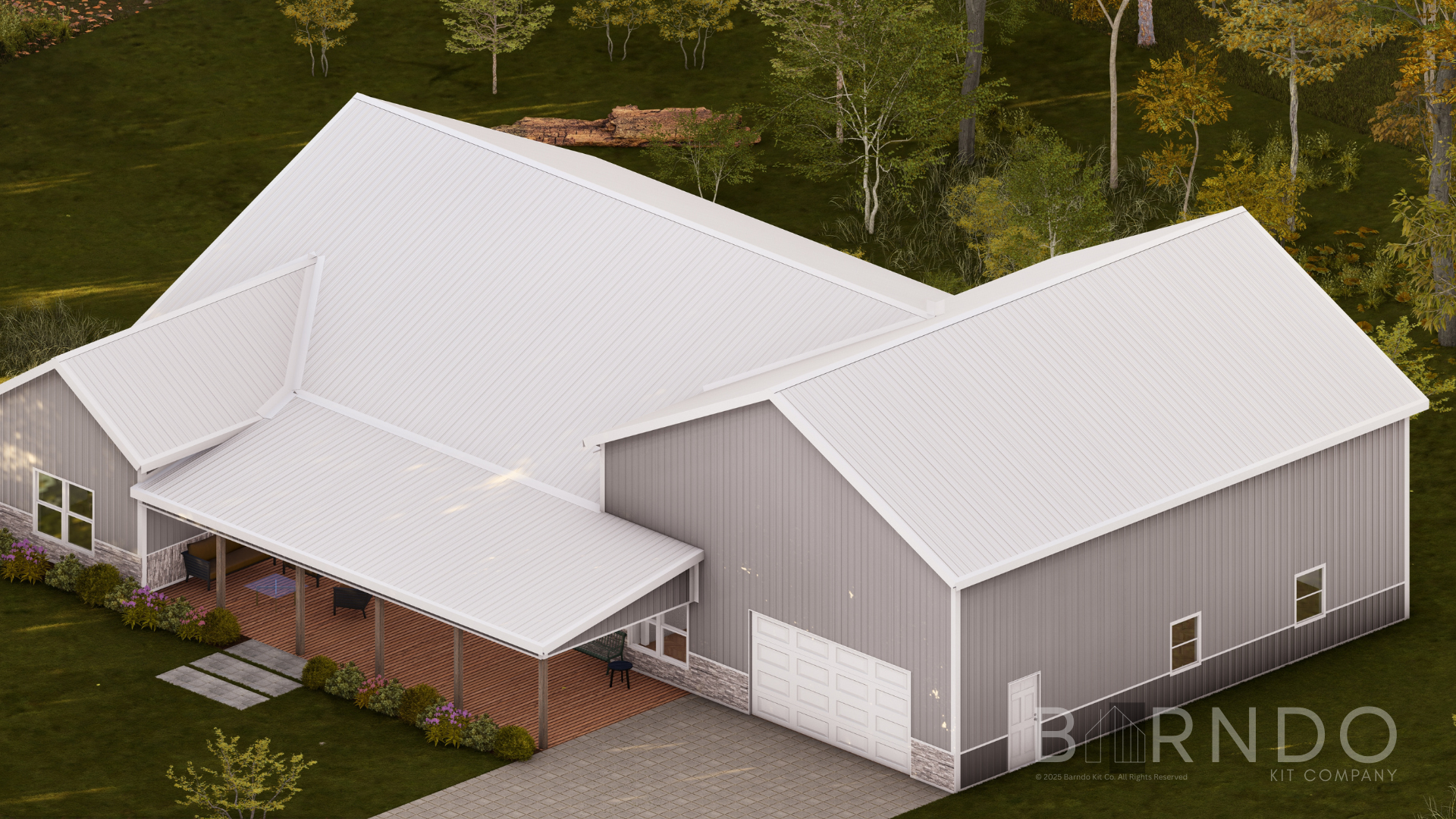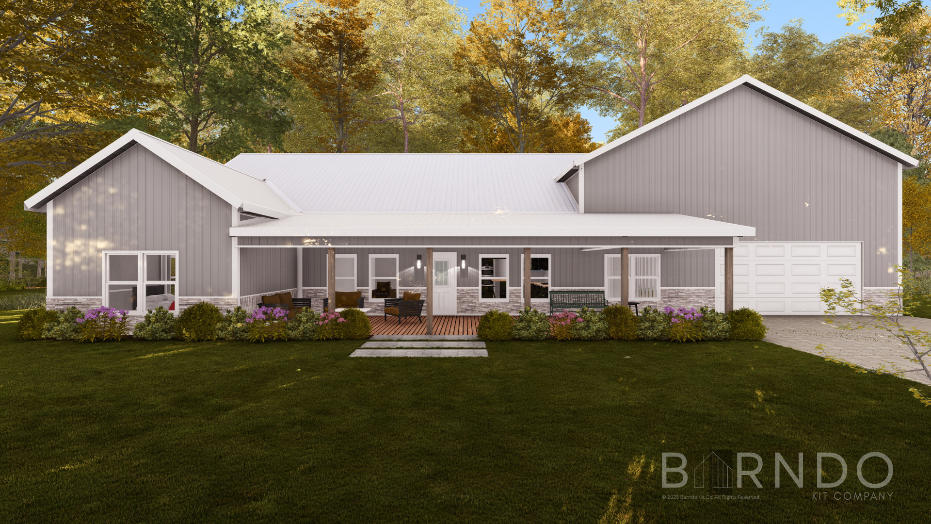 The Blaine barndominium kit combines size and function in an 81x60 footprint with an attached 45-foot shop — ideal for homeowners who need serious workspace alongside a full-time residence. Inside, this layout features four bedrooms, a guest suite with its own bath, and a large great room that opens onto a spacious back porch. With a walk-in pantry, mudroom, and dedicated mechanical space, the Blaine is a smart fit for busy families, hobbyists, or those running a business from home.