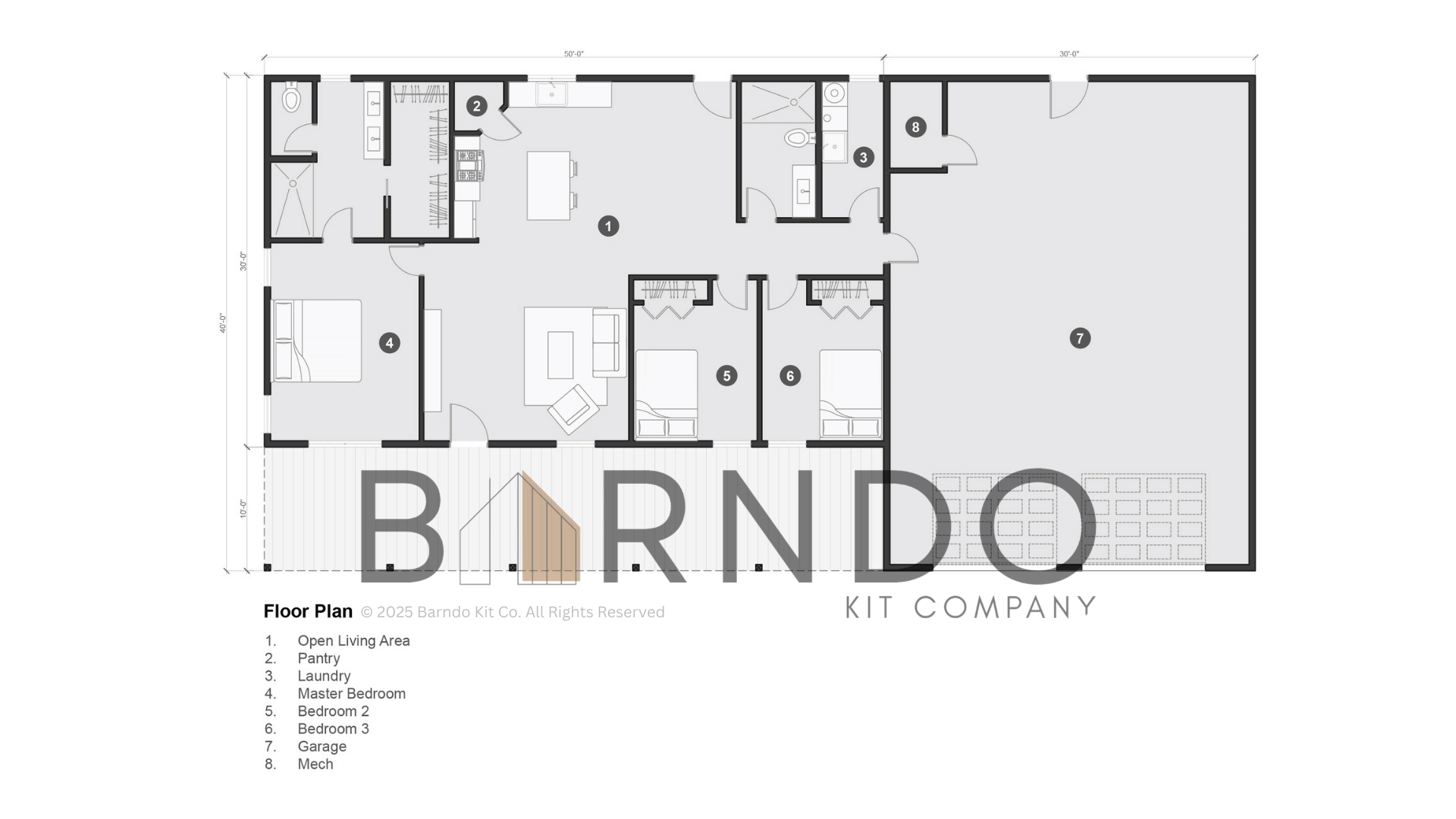 Purchase of a Barndo Kit Co. barndominium kit includes a single-use license for the accompanying construction plans: