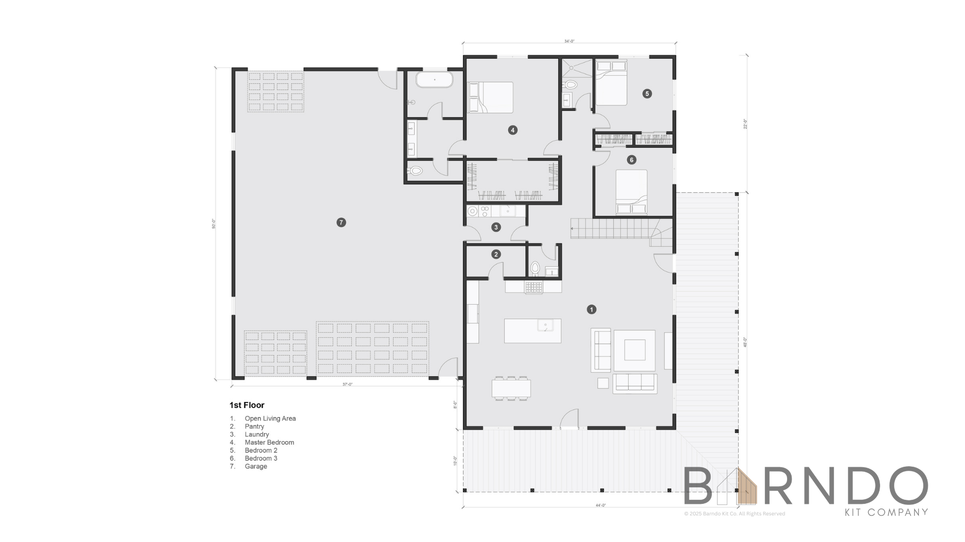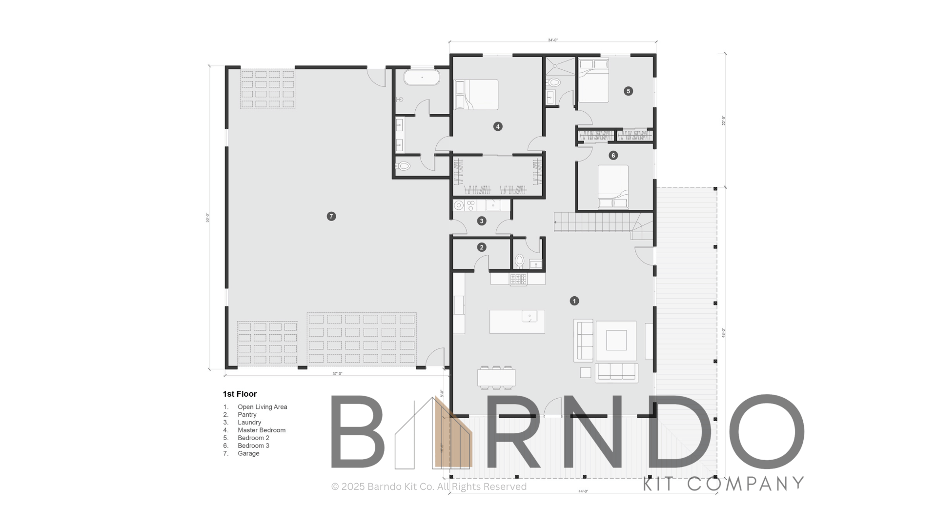 Purchase of a Barndo Kit Co. barndominium kit includes a single-use license for the accompanying construction plans: