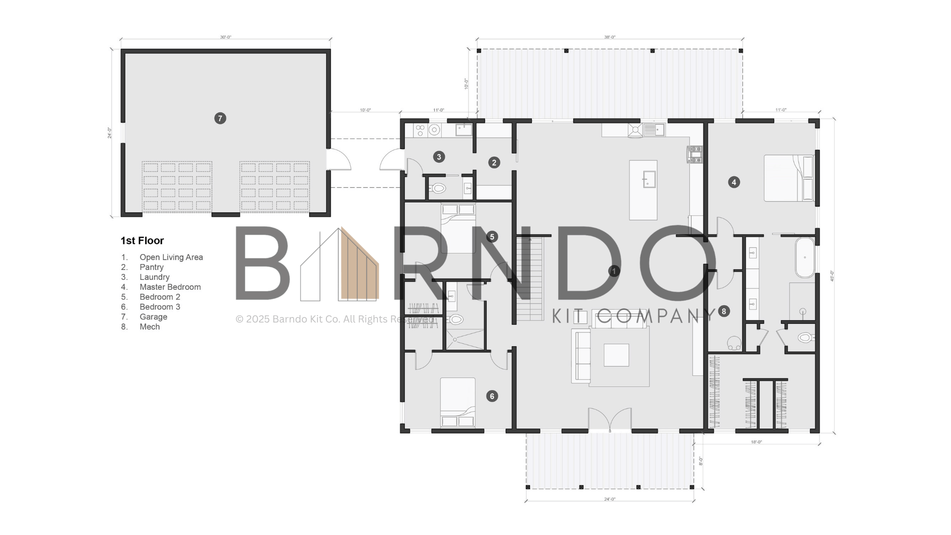 Purchase of a Barndo Kit Co. barndominium kit includes a single-use license for the accompanying construction plans: