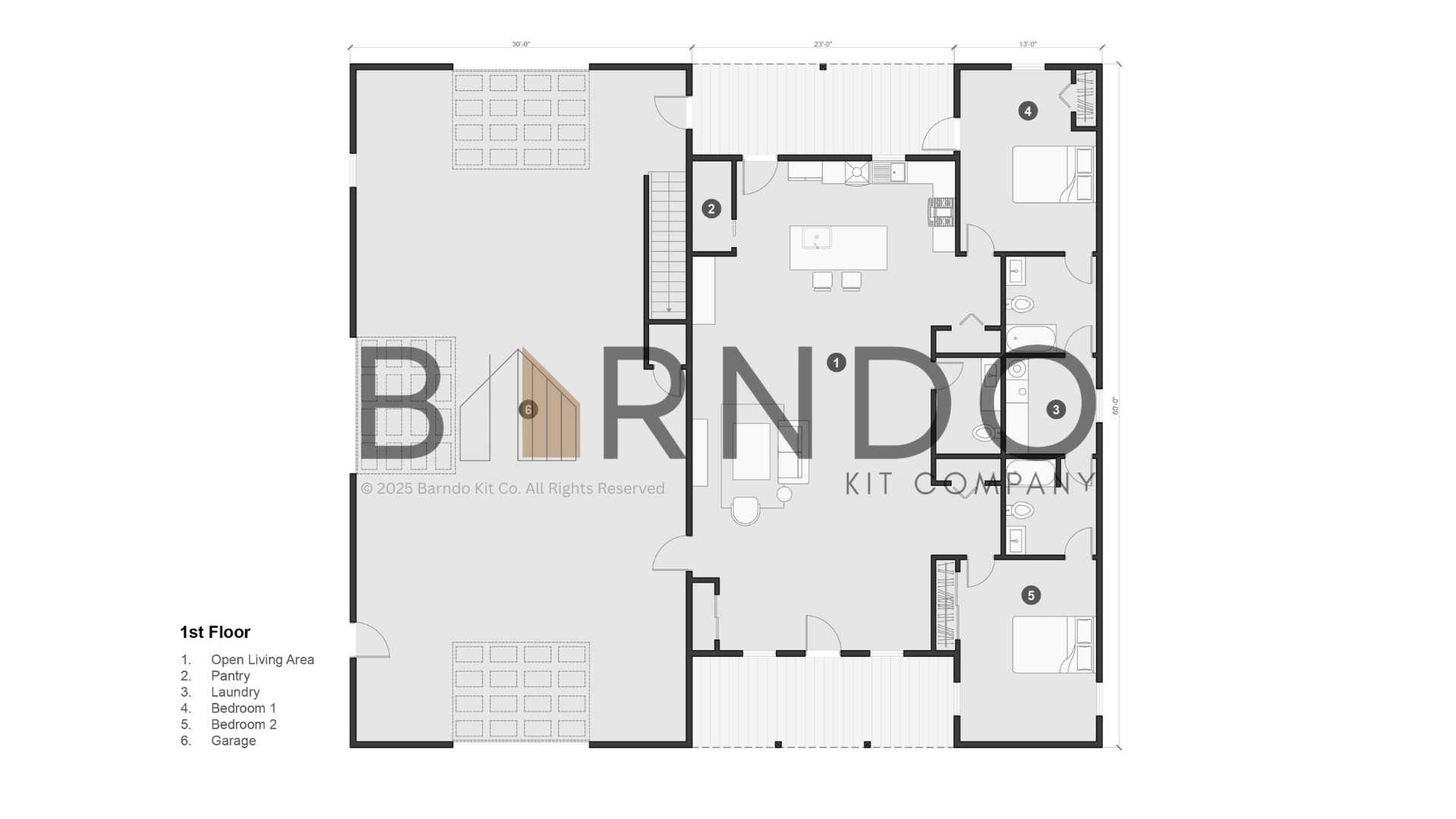 Purchase of a Barndo Kit Co. barndominium kit includes a single-use license for the accompanying construction plans: