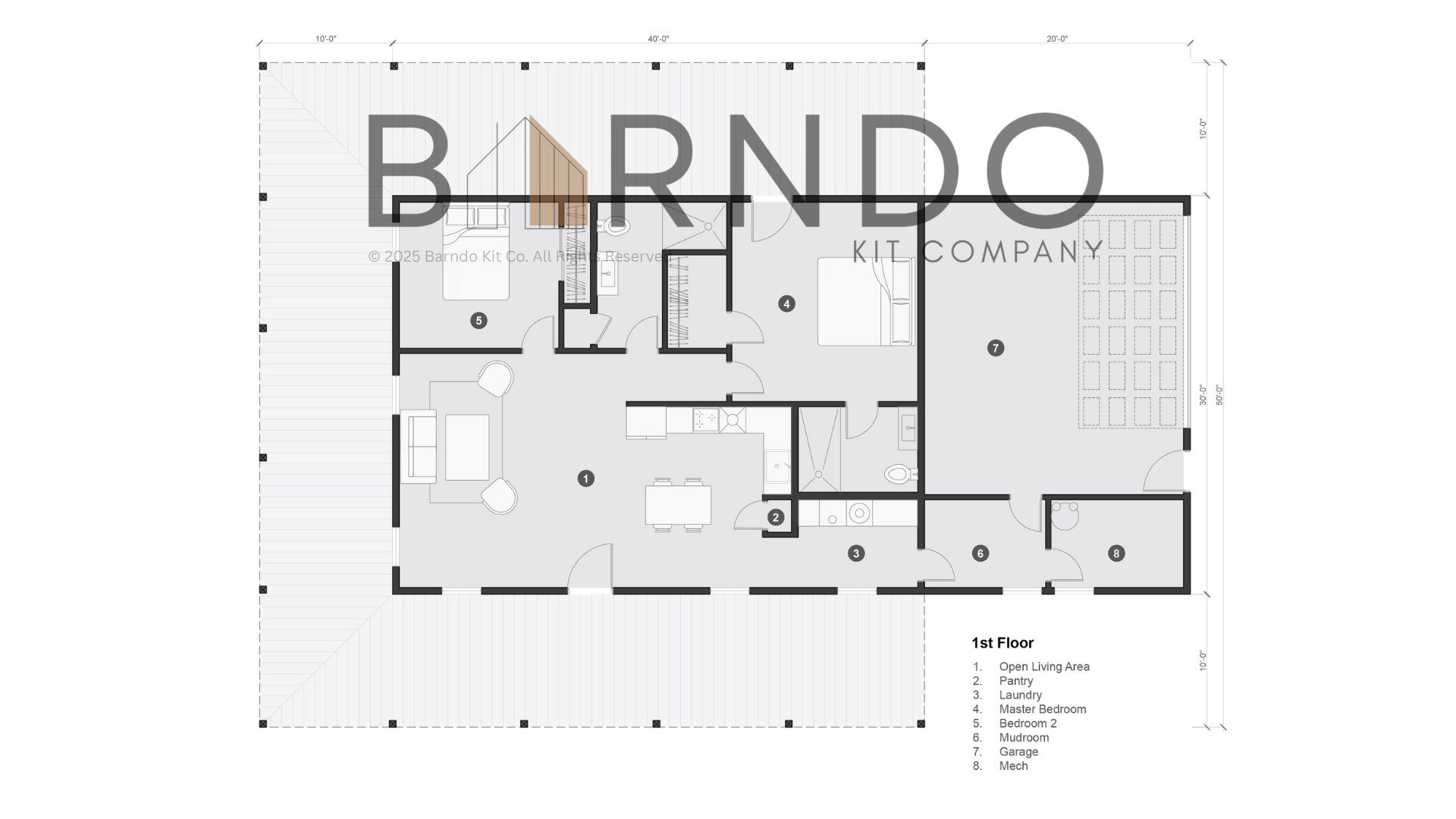 Purchase of a Barndo Kit Co. barndominium kit includes a single-use license for the accompanying construction plans: